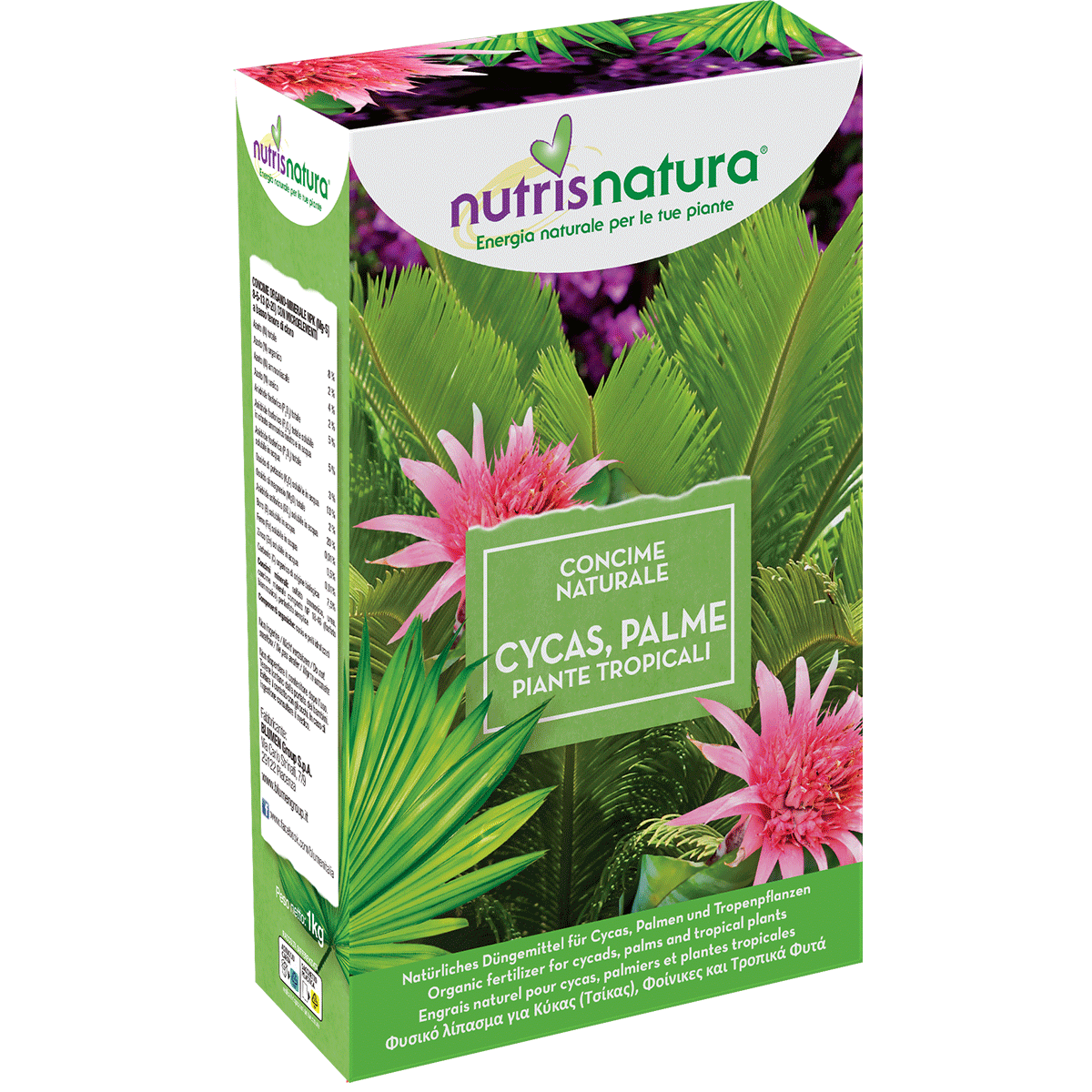 Concime organo minerale per cycas, palme e piante tropicali. Ciascun granulo contiene azoto in forma proteica, fosforo e potassio. La lenta cessione stimola la crescita omogenea e le abbondanti fioriture, riducendo le somministrazioni. I microgranuli aiutano la distribuzione omogenea e lo sviluppo regolare delle piante.